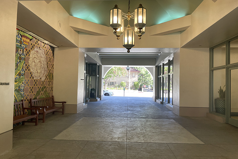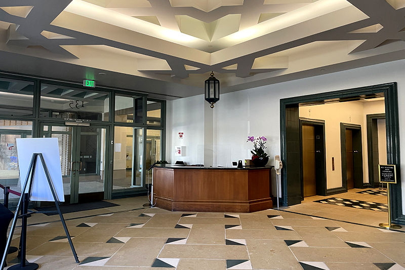 - Elegant lobby with floor-to-ceiling windows