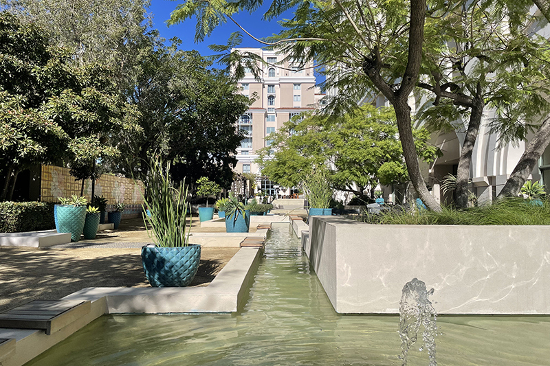 - Pools, water channels and waterfalls